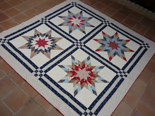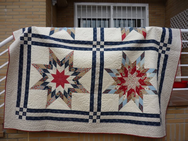 Esta colcha la hice para un curso que dí en Alborada, realizado con un Jelly Roll de colores muy americanos que me encantaron